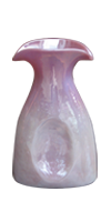 Rosalene is a heat sensitive glass, with a milk glass base that contains pure gold which gives it a pink blush when reheated. First done by Fenton in 1976 the original formula proved to be too corrosive for the pots and had to be changed to the formula that is being used currently there is a considerable difference in the coloring between the two, with very noticable transitions between the milk glass and blush, with the blush being a much deeper color, almost to the point of being red instead of pink. The original formula Rosalene was only made for a short period of time and examples are quite scarce. Dave Osburn aquired a small batch when here bought the Gibson Glass Co. in Milton and we where lucky enough to get a few pieces for Glass Mountain.