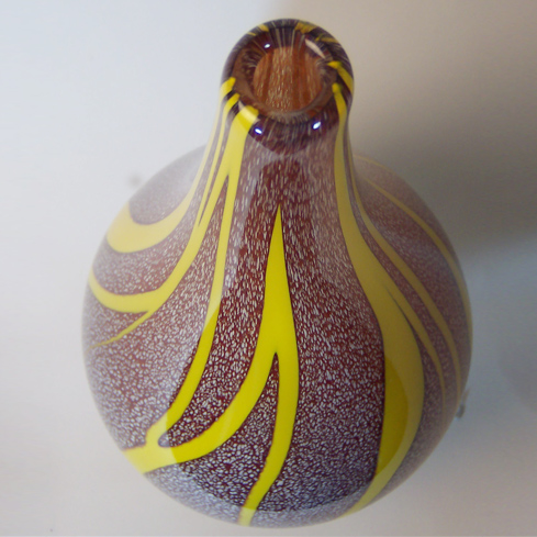 This Vase is hand-blown by local Glass Artist Santiago. From any angle you can capture gorgeous views of this art piece. It shows the sophisticated skills and creative visions of today’s American Glass Artist.